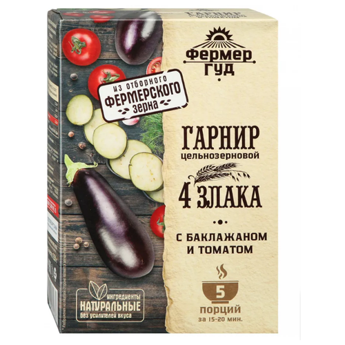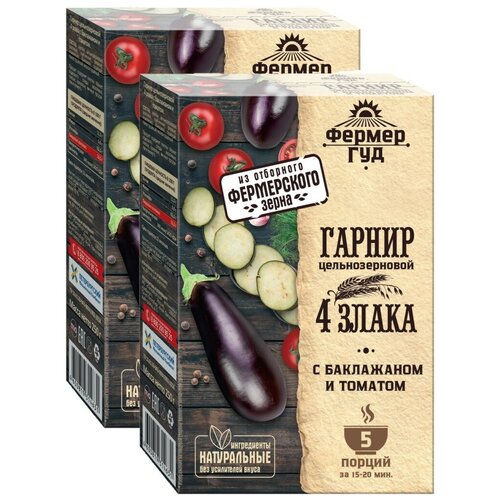 Фермер Гуд Гарнир Хлопья цельнозерновые 4 злака с баклажаном и томатом, 2шт. Х 250 гр
