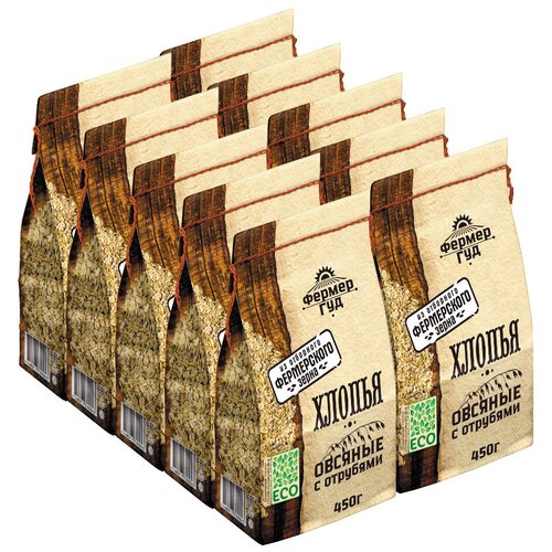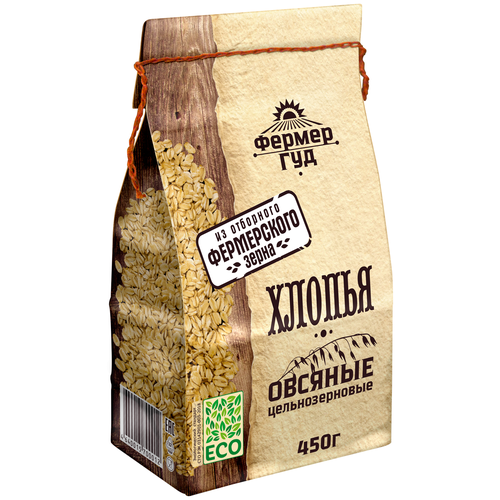 Фермер Гуд Хлопья овсяные цельнозерновые, пакет, 10 шт по 450гр