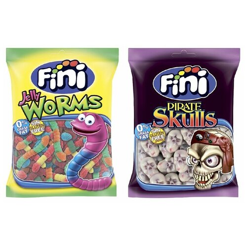 Набор мармелада Fini Червячки в сахаре + Черепа с начинкой (2 шт.)