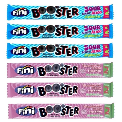 Жевательная конфета Booster вкус клубника со сливками Fini 3 шт + вкус кислые ягоды Fini 3 шт (6 шт)