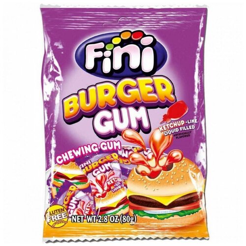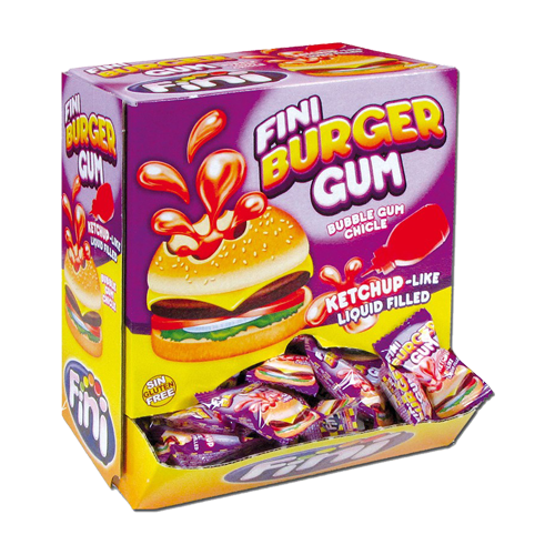 Жевательная резинка FINI "Бургер" с начинкой вишня-клубника 5,5 гр 200 шт. (упаковка)