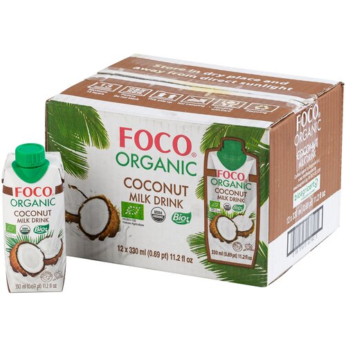 330 МЛ ORGANIC Кокосовый напиток без сахара "FOCO", Tetra Pak — коробка (12 шт)