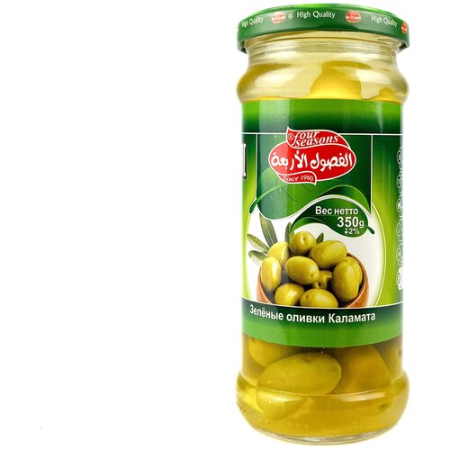 Оливки из Сирии зелёные с косточкой крупные Каламата "Четыре сезона" 350гр