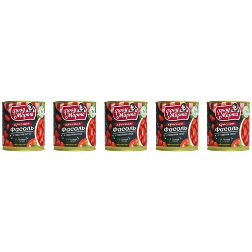 Фрау Марта Овощные консервы Фасоль красная в томатном соусе, 310 г, 5 шт