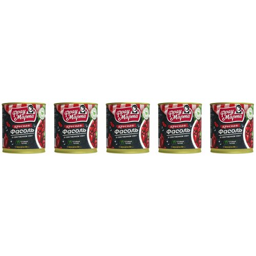 Фрау Марта Овощные консервы Фасоль красная в собственном соку, 310 г, 5 шт
