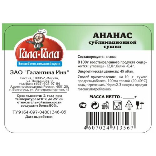 Ананас сублимированный (порошок) ‘Гала-Гала’, 50г
