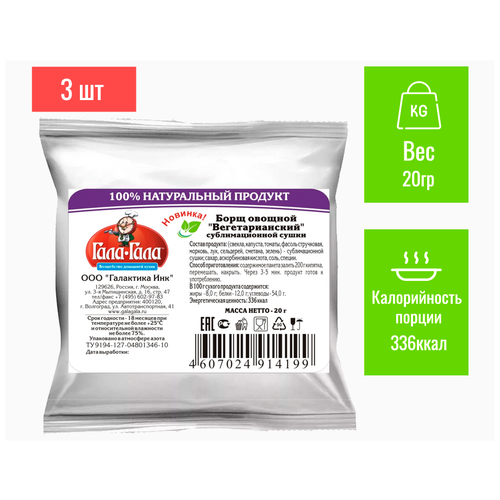 Борщ овощной "Вегетарианский" сублимированный Гала-Гала 20 г 3 шт.