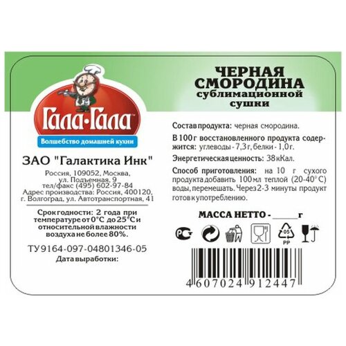 Чёрная смородина сублимированная ‘Гала-Гала’, 50г