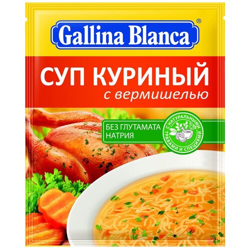 Суп быстрого приготовления, "Gallina Blanca", Куриный с вермишелью, 62г 16 шт