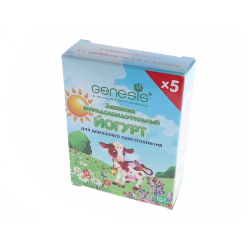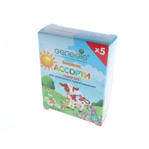 Закваска Ассорти №2 Genesis: Биойогурт, Ацидофильный йогурт, Биокефир, Бифидокомплекс, Творожок (упаковка — 5 пакетиков)