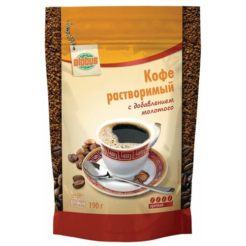 Кофе растворимый Глобус с добавлением молотого крепкий, 190 г