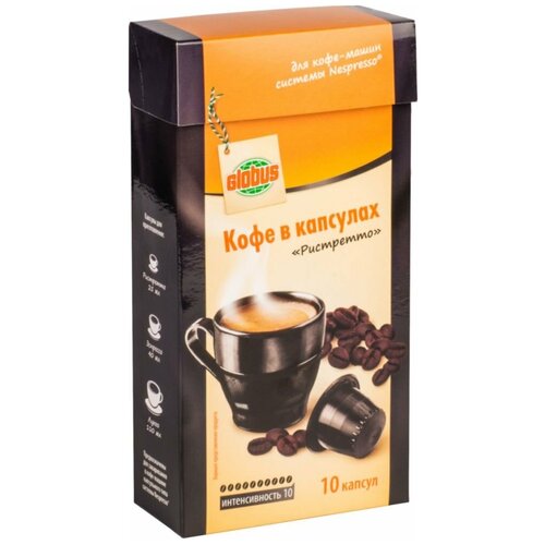 Кофе в капсулах Глобус Ристретто интенсивность 10, 10 капсул