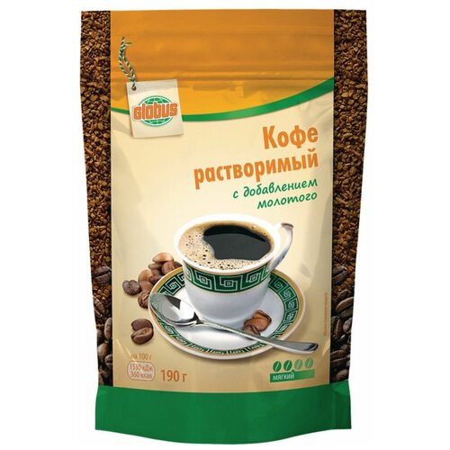 Кофе растворимый Глобус с добавлением молотого мягкий, 190 г