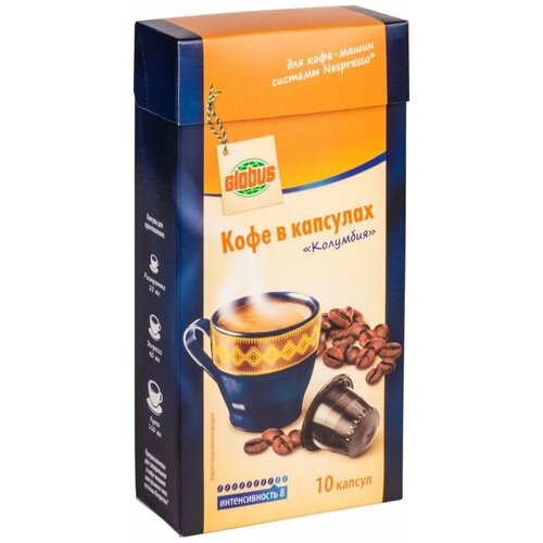 Кофе в капсулах Глобус Колумбия интенсивность 8, 10 капсул