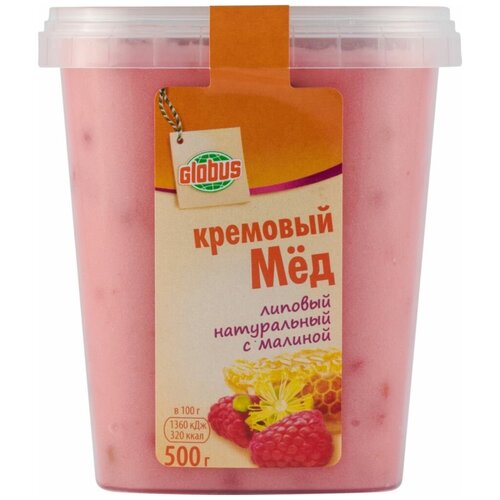 Мёд кремовый Глобус липовый натуральный с малиной, 500 г