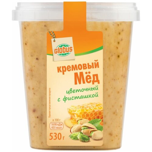 Мед кремовый Глобус цветочный с фисташкой, 530 г