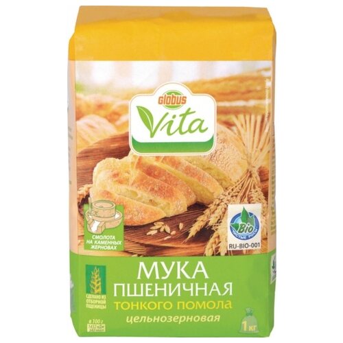 Мука пшеничная Глобус Вита цельнозерновая тонкого помола, 1 кг