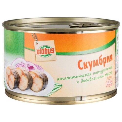 Скумбрия атлантическая Глобус натуральная с добавлением масла, 240 г