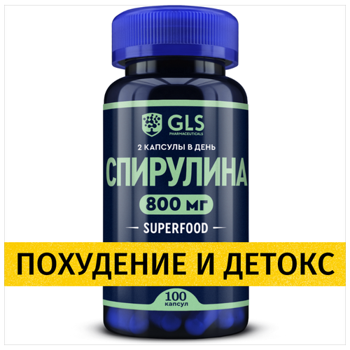 Спирулина таблетки, 800 мг, 100 капсул, бады / витамины для похудения и снижения веса, антиоксидант, иммуномодулятор, детокс, GLS Pharmaceuticals