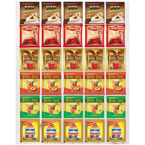 Набор растворимого чая и кофе в пакетиках, ассорти, 30 штук