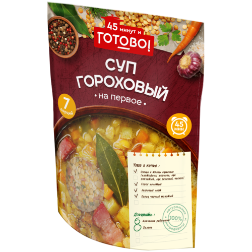 Суп гороховый с ароматом копченостей Готово! Быстрое Меню, смесь для супа 180 г
