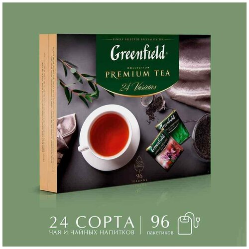 Чай GREENFIELD, набор 96 пакетиков в конвертиках (24 вида по 4 пакетика), 167,2 г, картонная коробка, 1782-08