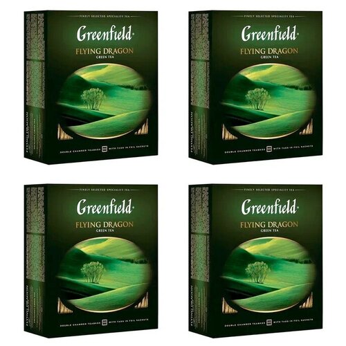 Чай зеленый Greenfield Flying Dragon в пакетиках набор 4 упаковки, 400 шт., 4 уп.