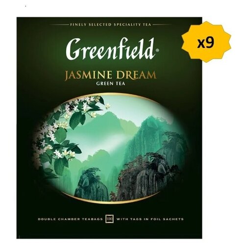 Чай зеленый Гринфилд жасмин дрим Greenfield Jasmine Dream, с жасмином, 9 шт по 100 пак