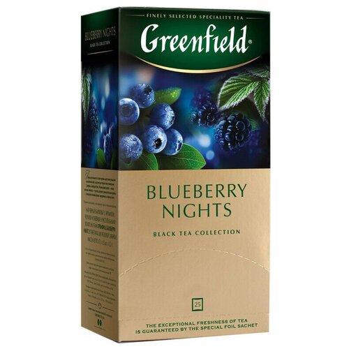Чай черный Гринфилд блюберри найтс Greenfield Blueberry Nights, со вкусом гибискуса, черники, сливок и мальвы, 10 шт по 25 пак