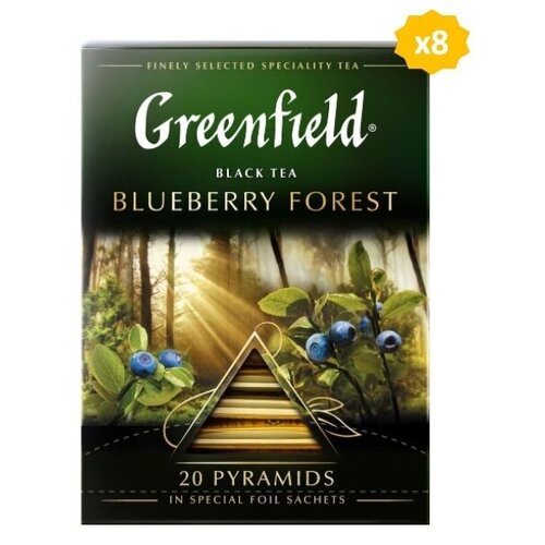 Чай черный Гринфилд блюберри форест Greenfield Blueberry Forest, со вкусом гибискуса, черники, сливок и мальвы, 8 шт по 20 пир