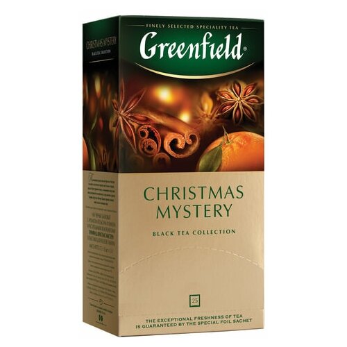 Чай GREENFIELD (Гринфилд) "Christmas Mystery" ("Таинство Рождества"), черный с корицей, 25 пакетиков, по 1,5 г, 0434-10
