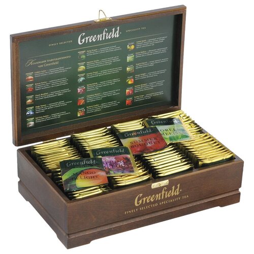 Набор чая Greenfield в пакетиках, подарочный набор в деревянной шкатулке, 96 пак.