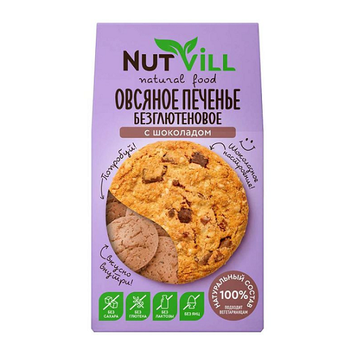 Печенье nutvill овсяное с шоколадом без сахара и глютена 85 г