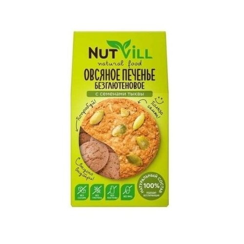 Печенье овсяное с семенами тыквы без сахара и глютена nutvill 85 г
