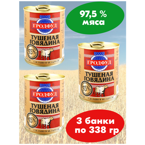 Говядина тушеная, Гродфуд, 3 шт. по 338 г