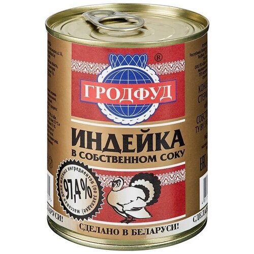 Индейка Гродфуд по-белорусски, в собственном соку, стерилизованные 2 банки по 338 грамм.
