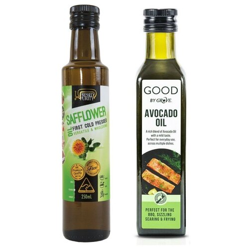 Масло Сафлоровое (Дикий Шафран) Австралия Нерафинированное Pressed Purity Cold Pressed 250 мл. и Масло авокадо Новая Зеландия Good by Grove 250 мл.