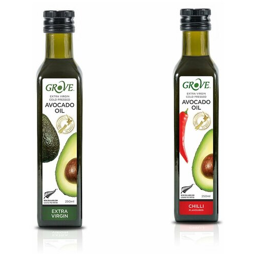 Масло авокадо с лимоном и перцем и Масло авокадо с перцем чили Новая Зеландия GROVE Нерафинированное Первый Холодный Отжим Extra Virgin, 250 мл, 2 шт