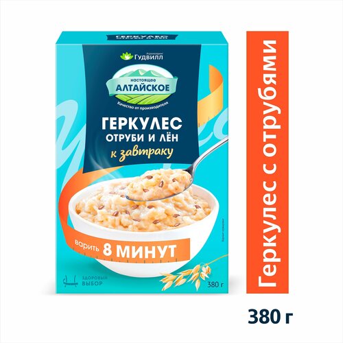 Хлопья Геркулес с отрубями и семенем льна Гудвилл в картонной коробке 380 грамм