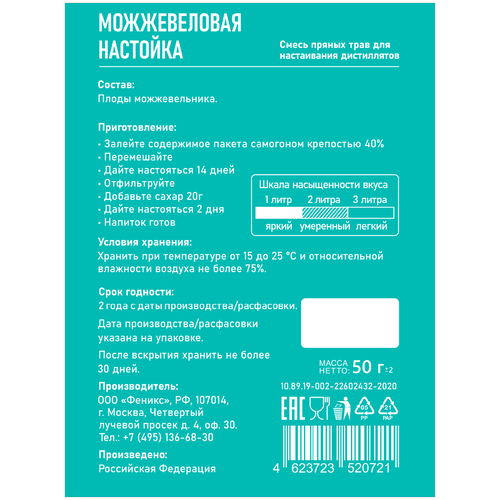 Настойка для самогона GUSTO "Можжевеловая" №15 50 гр. набор трав и специй для настаивания