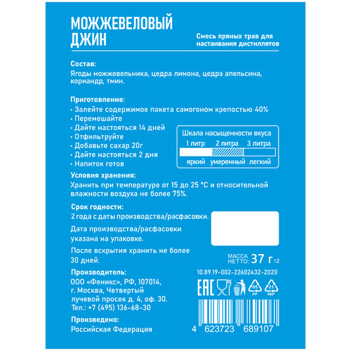Настойка для самогона GUSTO "Можжевеловый джин" №55 набор трав и специй для настаивания