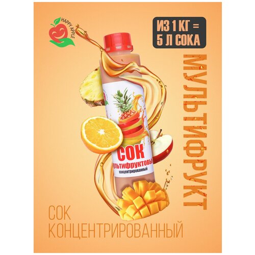 Сок концентрированный/ Концентрат сока Мультифруктовый, бутылка 1 кг, Happy Apple