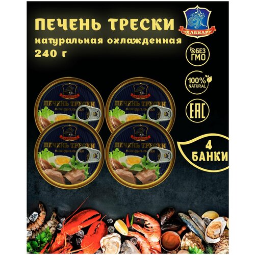 Печень трески натуральная охлажденная, Хавиар, 4 шт. по 240 г