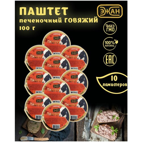 Паштет печеночный Говяжий, Эжан, 4 шт. по 100 г