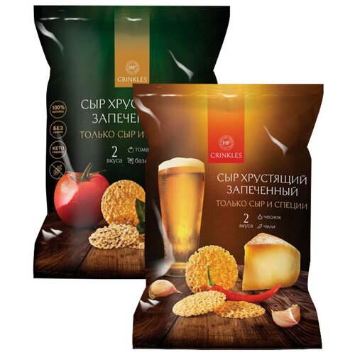 Crinkles / Сырное ассорти -2 шт. с чили и чесноком, томатом и базиликом, закуска к вину и пиву, сырные снеки