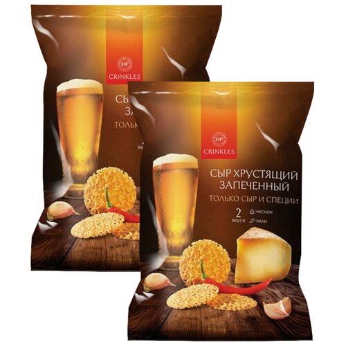 Crinkles / Сыр хрустящий с чесноком и чили 2 шт. пивное ассорти, сырные снеки, полезная закуска