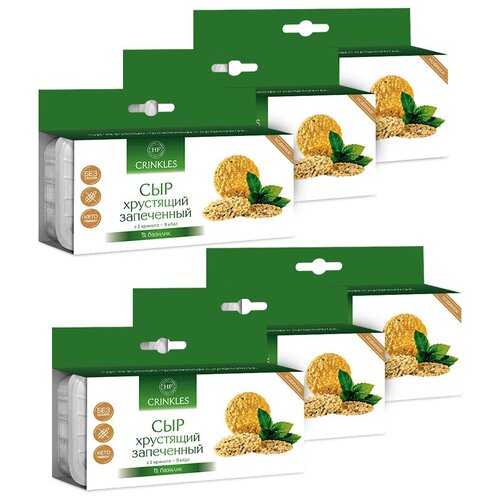 Crinkles / Сыр запеченный с базиликом — 6 упаковок, закуска к вину, правильный перекус, сырные чипсы