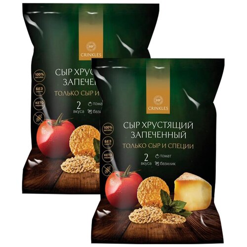 Crinkles / Сыр запеченный с томатом и базиликом — 2 упаковки, закуска к пиву, сырные снеки, полезные чипсы