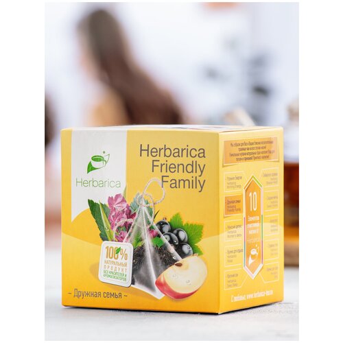 Herbarica Friendly Family. Гербарика Дружная семья травяной чай 20 пирамидок с листьями смородины, яблоком, шиповником, иван-чаем, лепестками розы