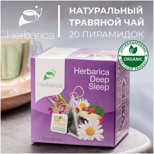 Herbarica Deep Sleep. Гербарика — Крепкий сон — травяной чай в 20 пирамидках по 2 грамма с ромашкой, иван-чаем, листьями земляники и корицей.